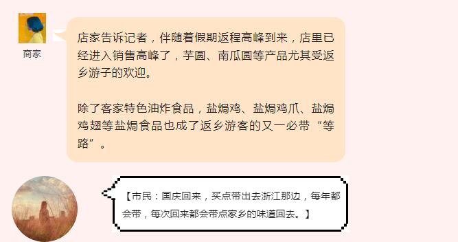 今天是“雙節(jié)”假期的最后一天,回梅過節(jié)的游子又將踏上返程;而各式各樣的伴手禮就成了必不可少的點(diǎn)綴。游子們紛紛開始購買土特產(chǎn),或贈(zèng)送給親朋好友,或慰藉鄉(xiāng)愁,帶上家鄉(xiāng)的味道告別家鄉(xiāng)。